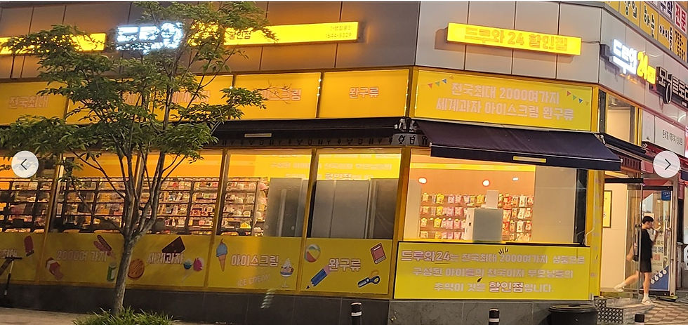 다양한 제품군 : 드루와24할인점은 커피,아이스크림,스낵,음료 등을 제공합니다. 또한 해당 지역의 장점을 최대한 살린 간편한 아이템을 전시 판매하는 매장 쇼핑문화를 제공합니다.